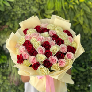 50 Pink & Cream Rose International Women’s Day Bouquet – Upper Hill Delivery
