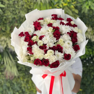 50 Red & Cream Rose Women’s Day Bouquet – Send Flowers from UK