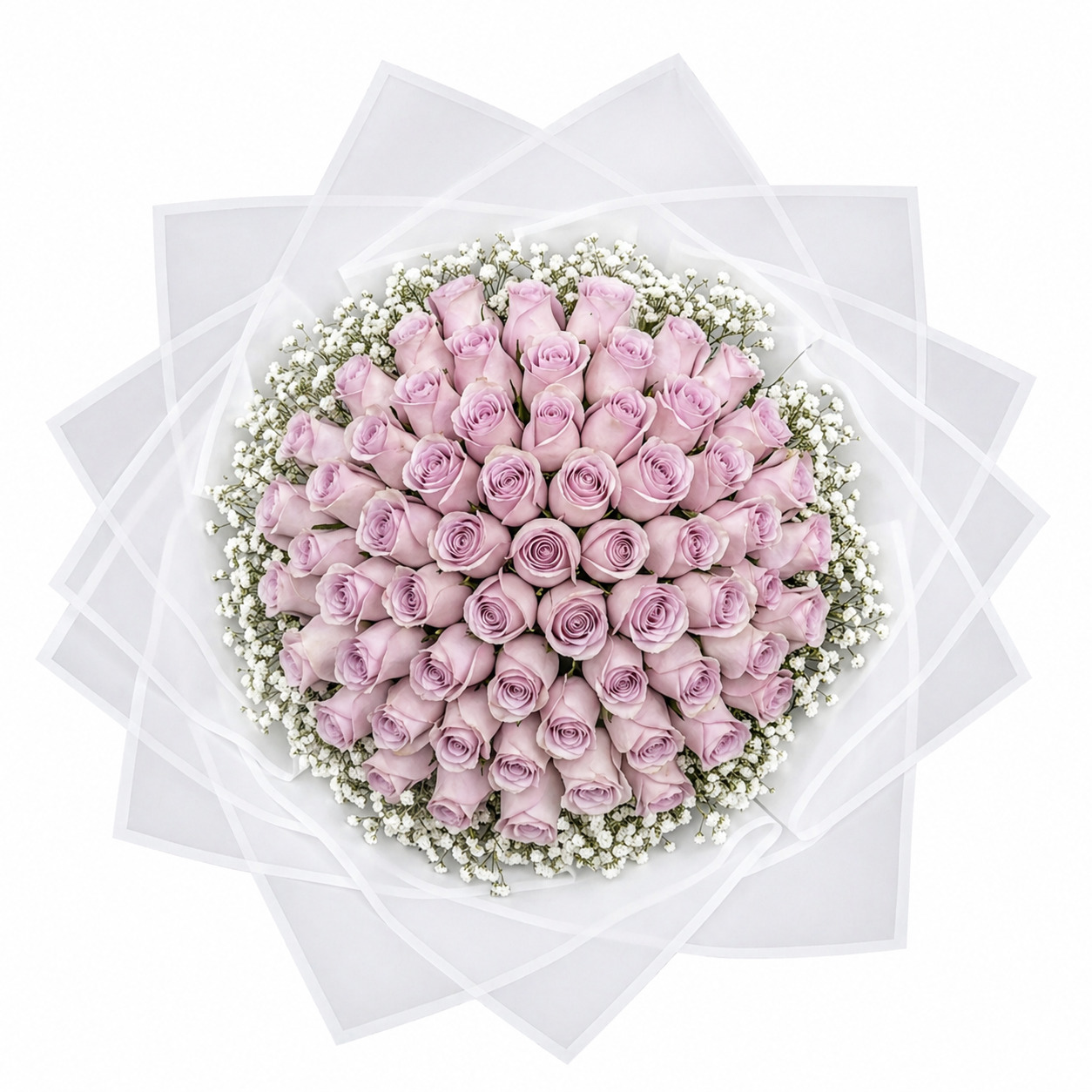 50 Lilac Roses with Baby Breath Birthday Bouquet