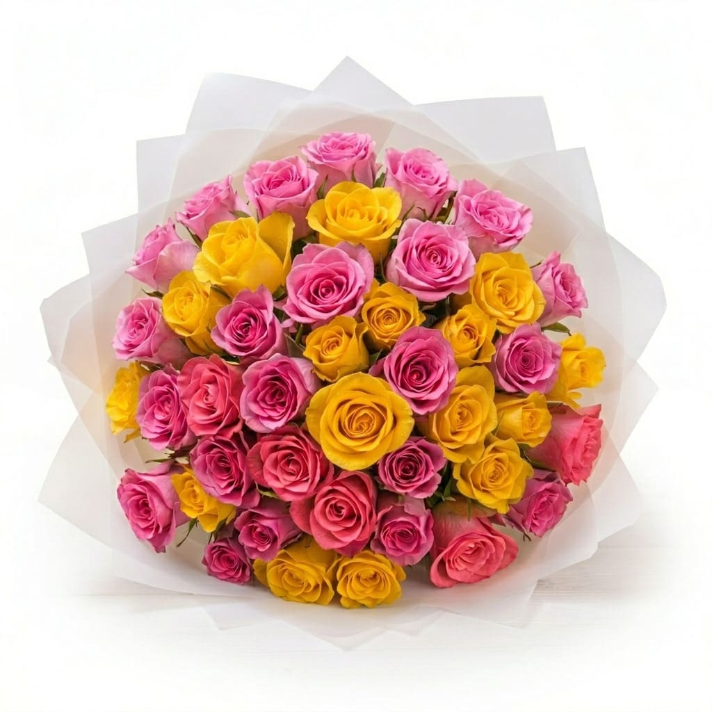 Home » Shop » Birthday Flowers & Gifts in Nairobi » 50 Pink & Yellow Rose Birthday Bouquet