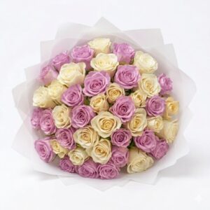 50 Lilac & Cream Rose Birthday Bouquet