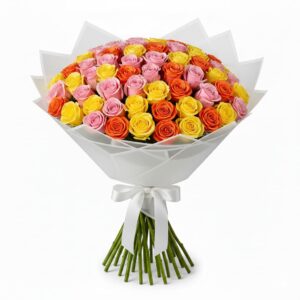 50 Yellow, Pink & Orange Rose Birthday Bouquet