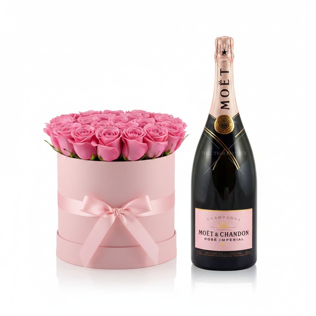 A Pink Rose Hat Box with Champagne – Birthday Gift(Small Box)