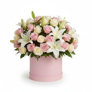 Cream & Pink Rose with Lilies Birthday Box