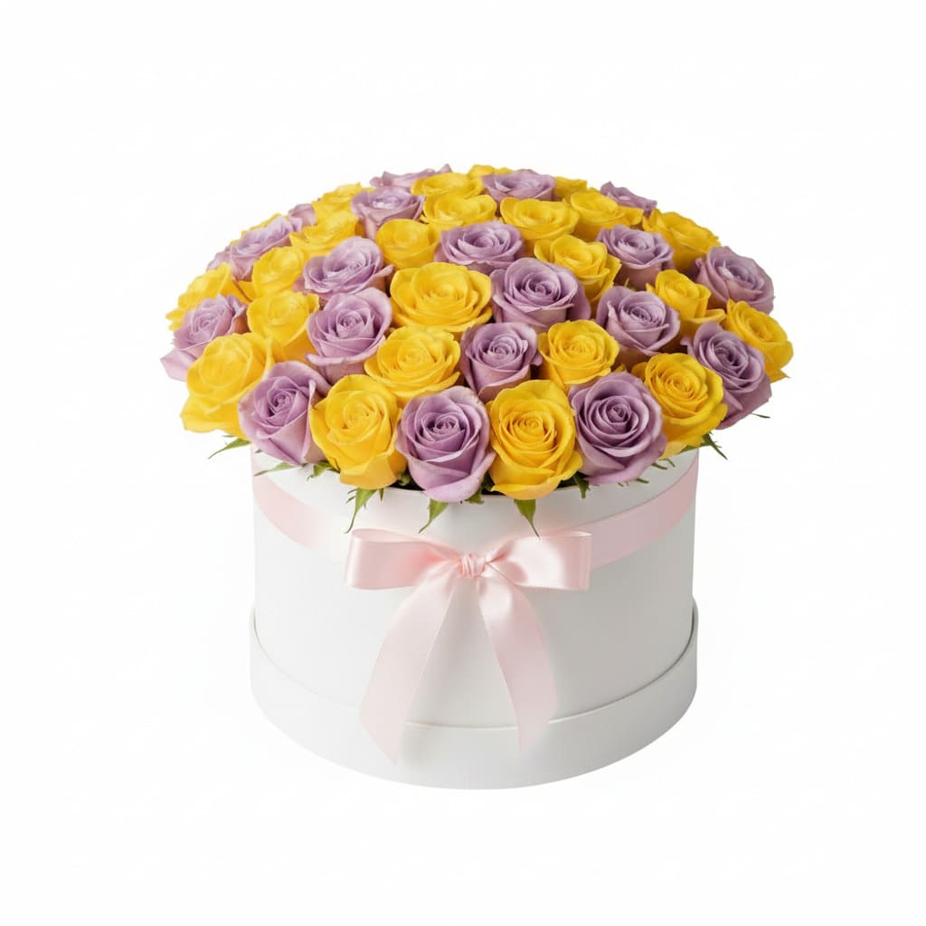 Home » Shop » Birthday Flowers & Gifts in Nairobi » A Yellow & Lilac Rose Birthday Hat Box