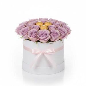 A Lilac Rose Birthday Hat Box with Ferrero Chocolates