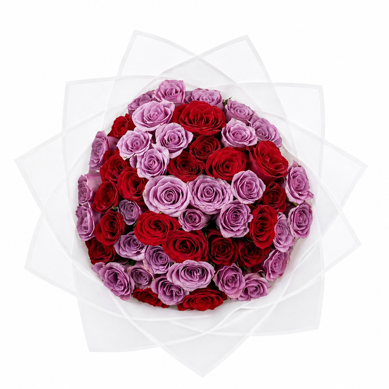 100 Lilac & Red Rose Women’s Day Bouquet – Send Flowers from USA