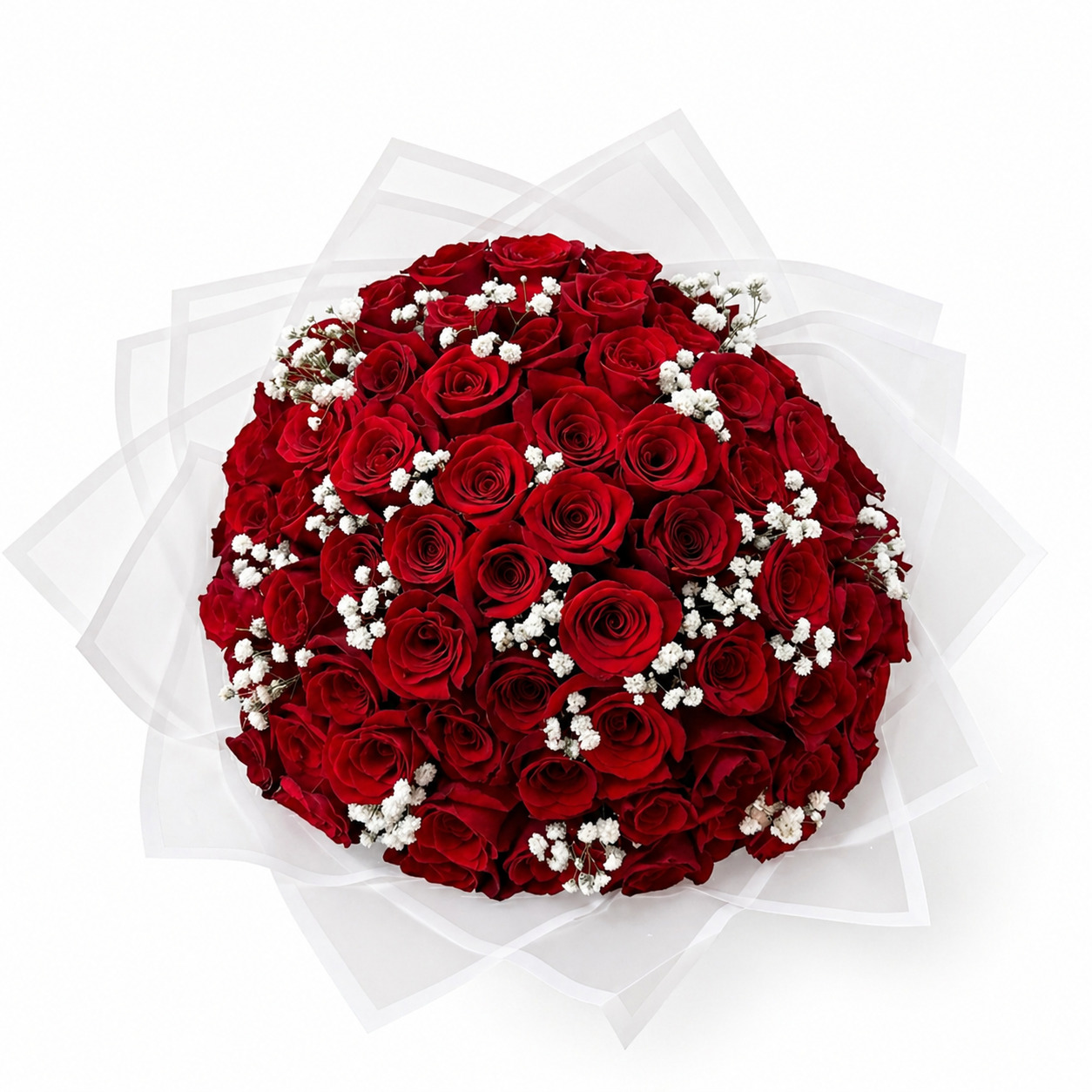 50 Red Rose with Baby Breath Romantic Bouquet