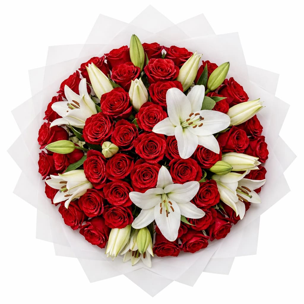 50 Red Rose with Lilies Romantic Bouquet