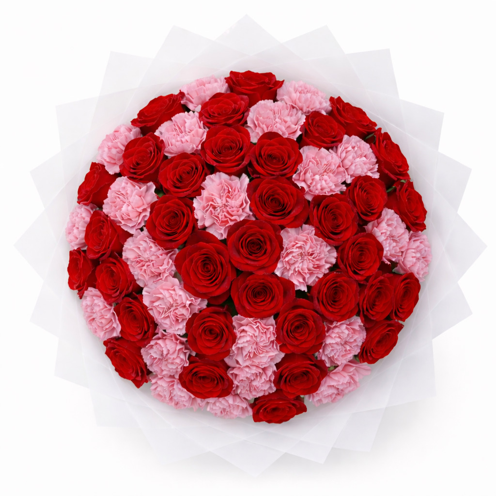 Red Rose & Pink Carnation Romantic Bouquet