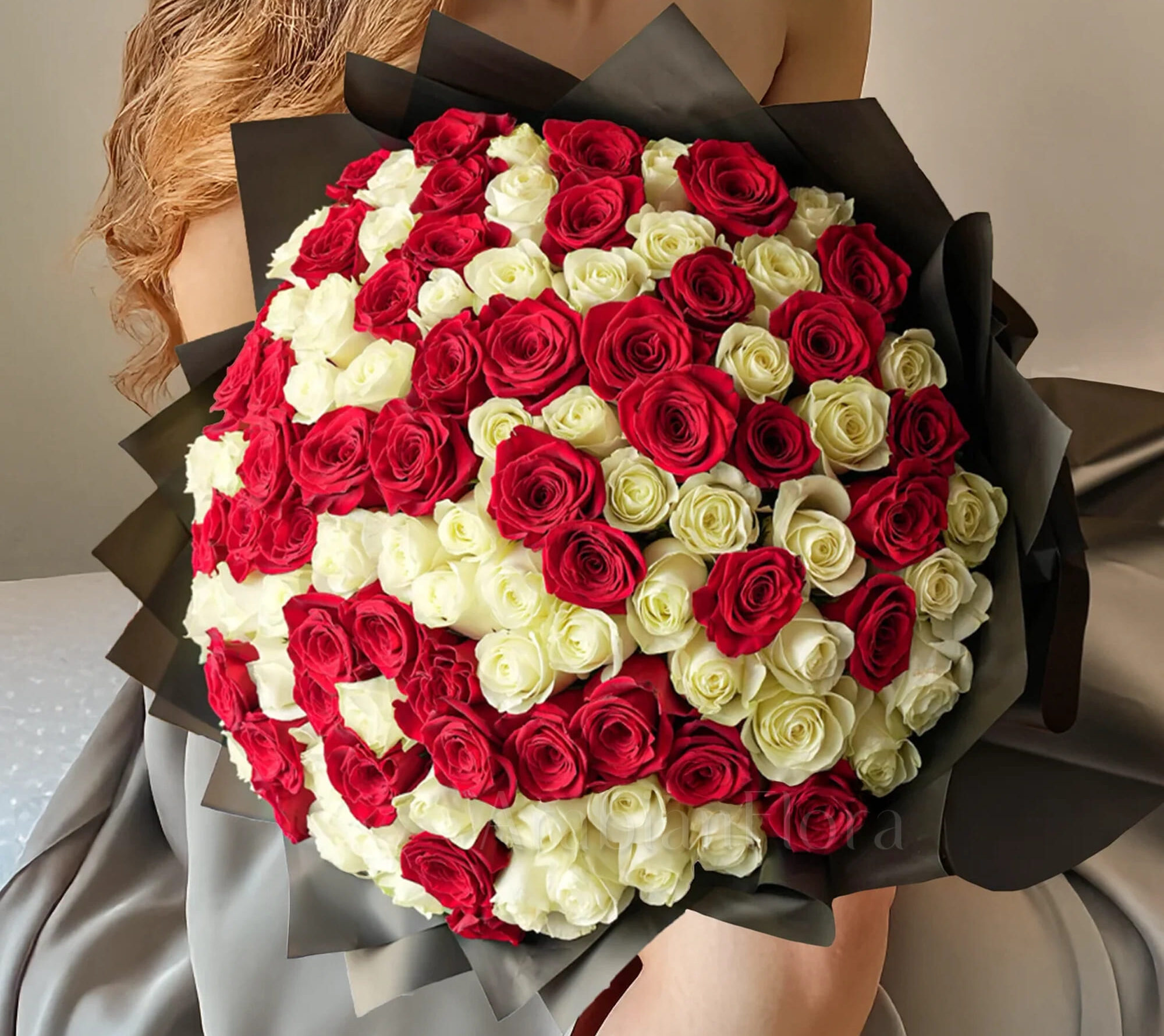 Send elegant 100 red and white roses mother’s day bouquet floral gift arrangement with same day delivery in Kileleshwa, Nairobi.