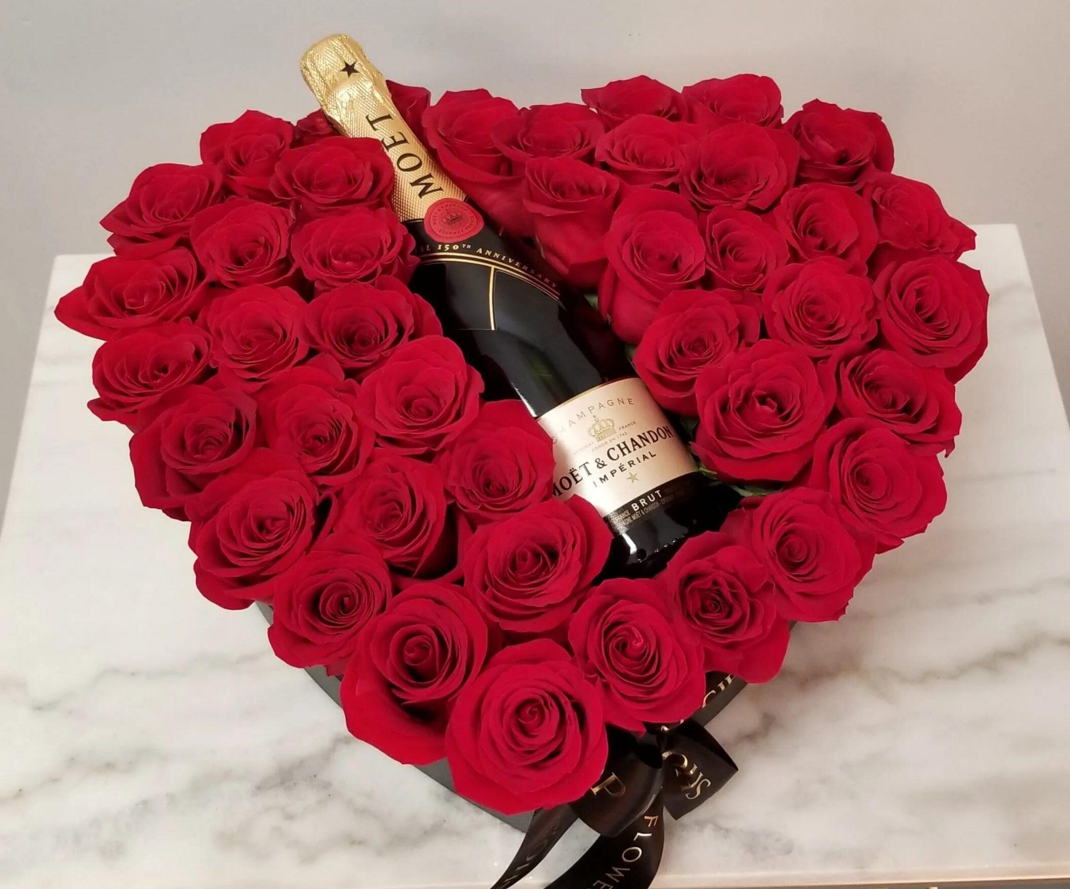 A Romantic Valentine’s Heart Box With Roses & Moet