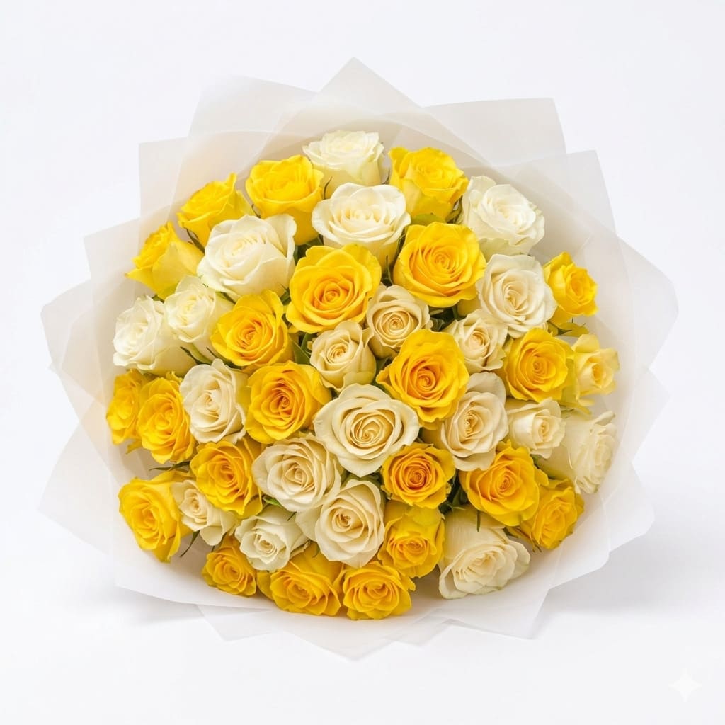 Home » Shop » Holiday Flowers & Gifts Delivery in Nairobi » Women's Day Flowers & Gifts » 50 Yellow & White Rose Mother’s Day Bouquet